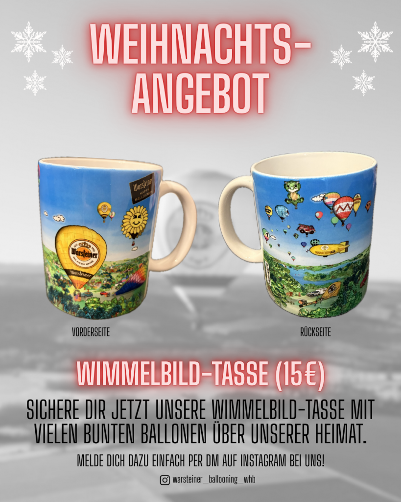 Und für alle, die vielleicht nur noch eine Kleinigkeit für unter dem Baum suchen: Ihr könnt auch die Tasse einzeln für 15 Euro plus Versand erwerben. Meldet euch dazu per DM bei Instagram (@warsteiner_ballooning_whb) bei uns! Wir melden uns dann direkt bei euch!